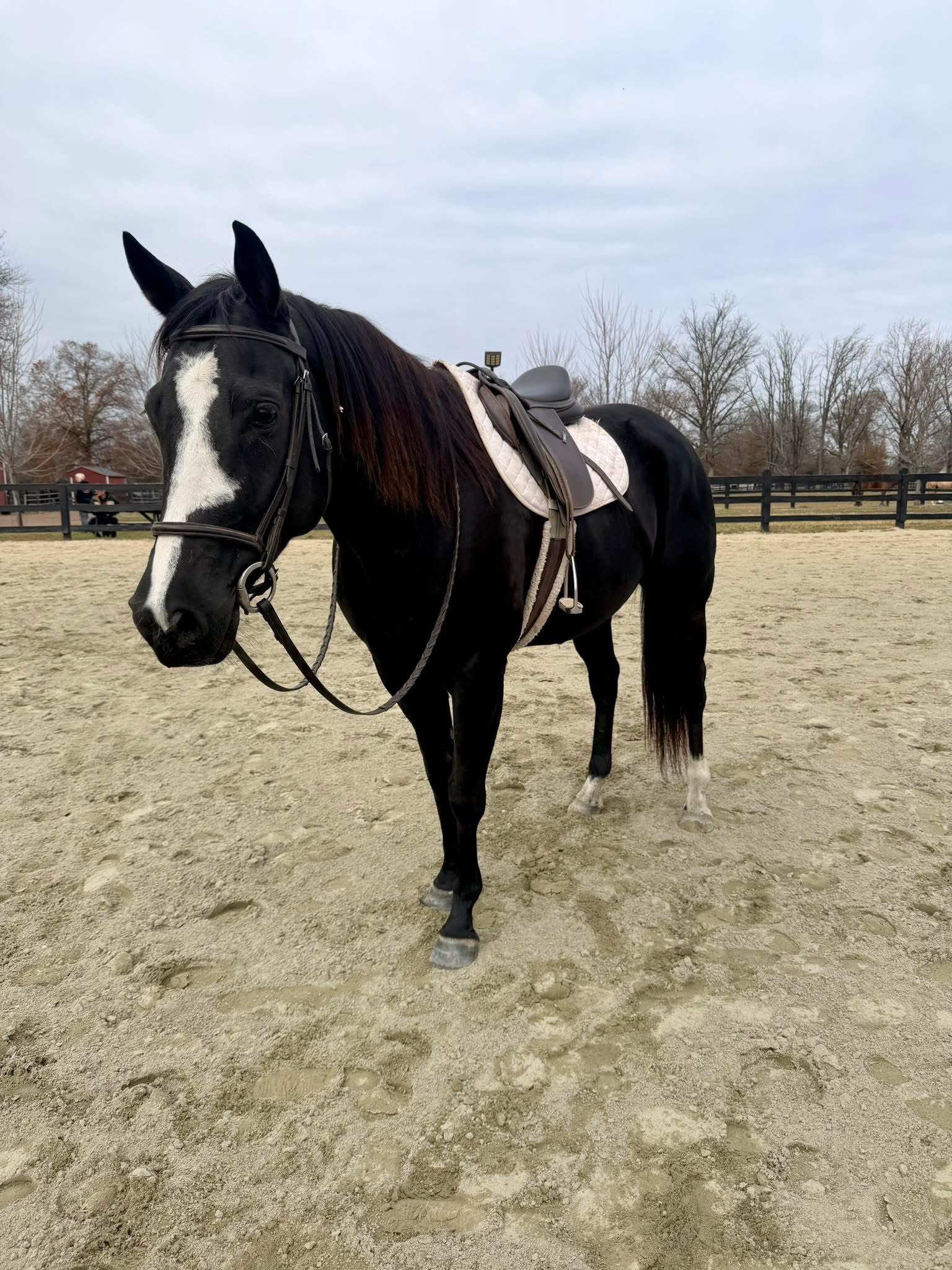 Aurora is a big, beautiful mare standing between 16.3–17 hands, but don’t let her height fool you she is a great ride. She is best suited for more advanced riders and is perfect for those looking to elevate their riding and take on a fun challenge. Aurora enjoys working in the ring and will occasionally go out on the trails.